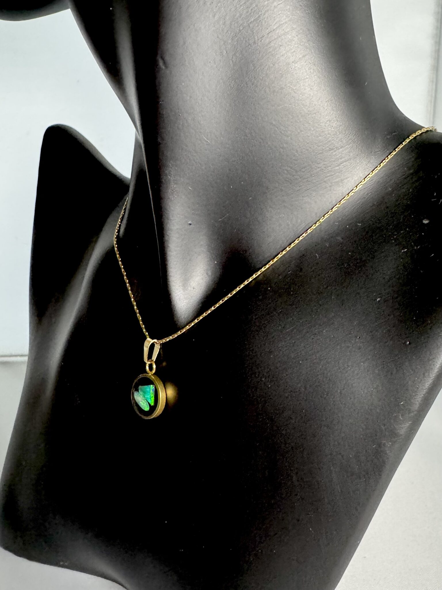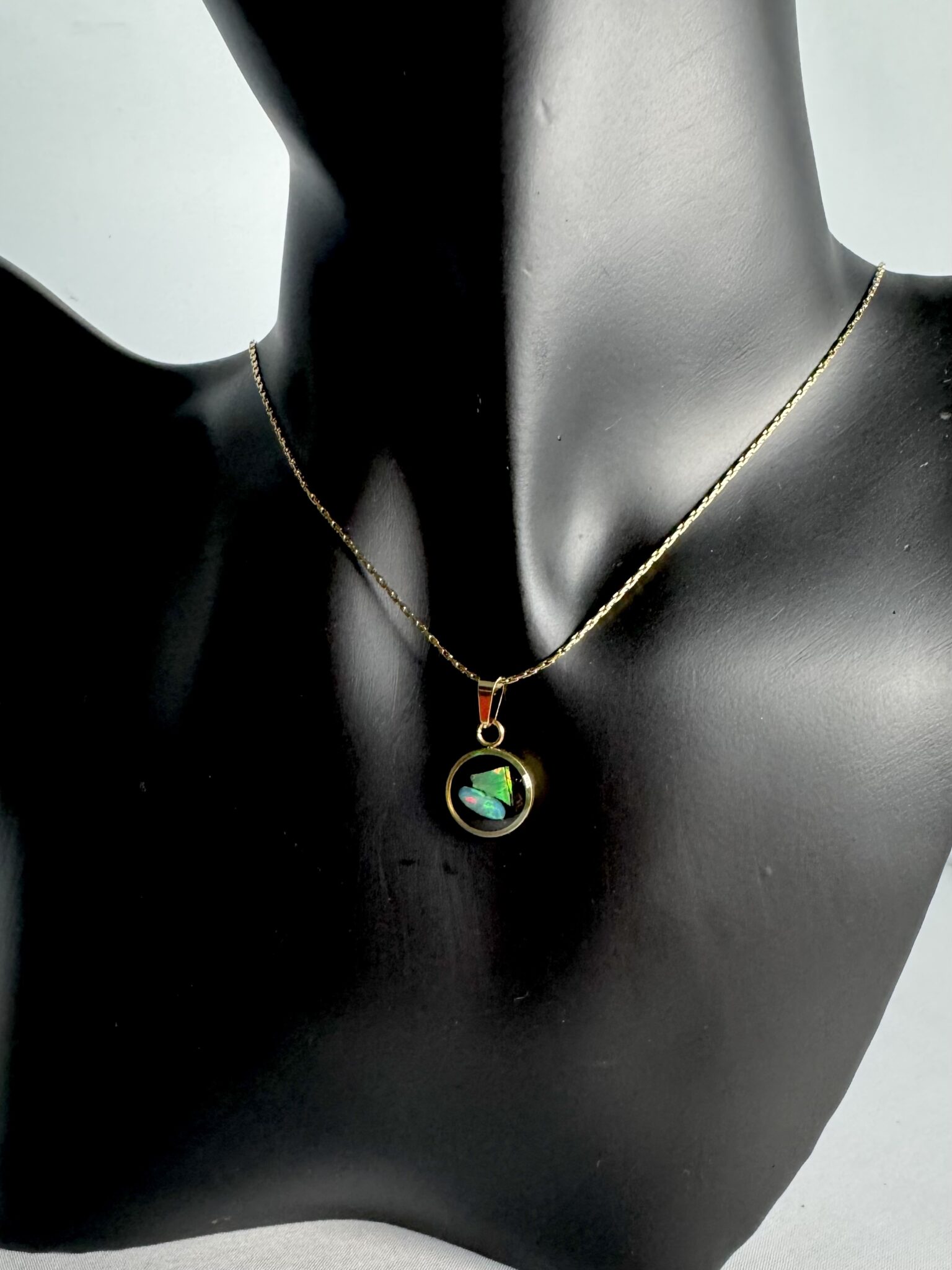 Vergoldeter Schöner kleiner Kettenanhänger mit funkendem Opal in Epoxit mit einer vergoldeten Halskette. *4