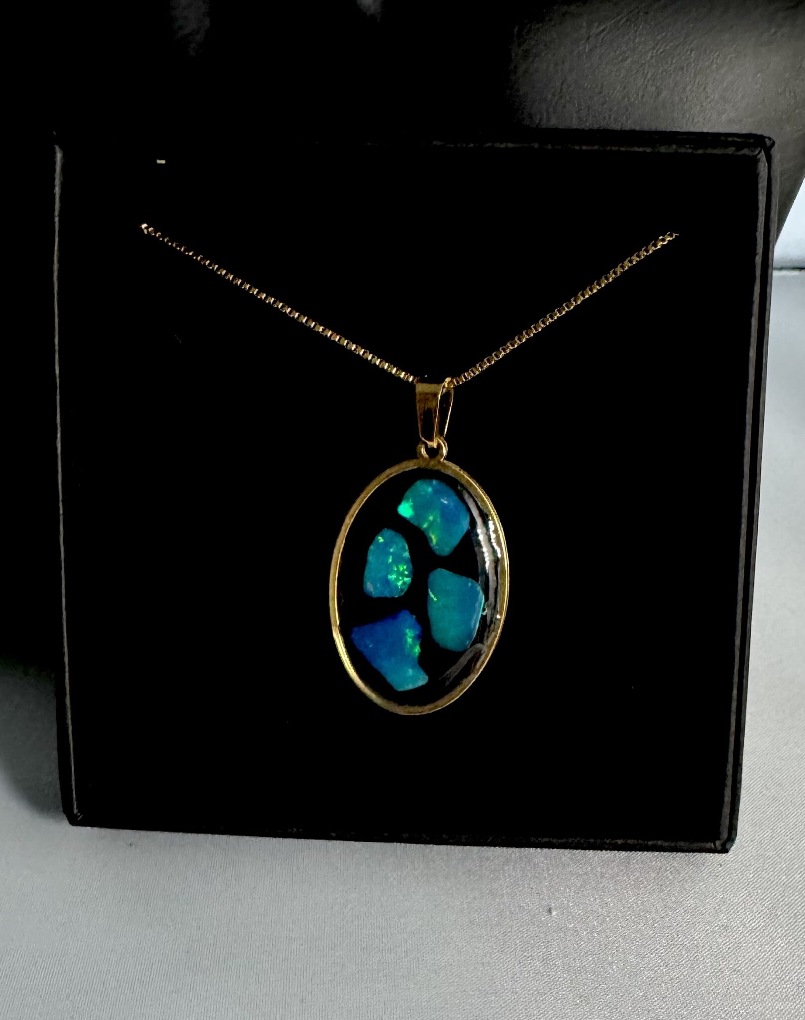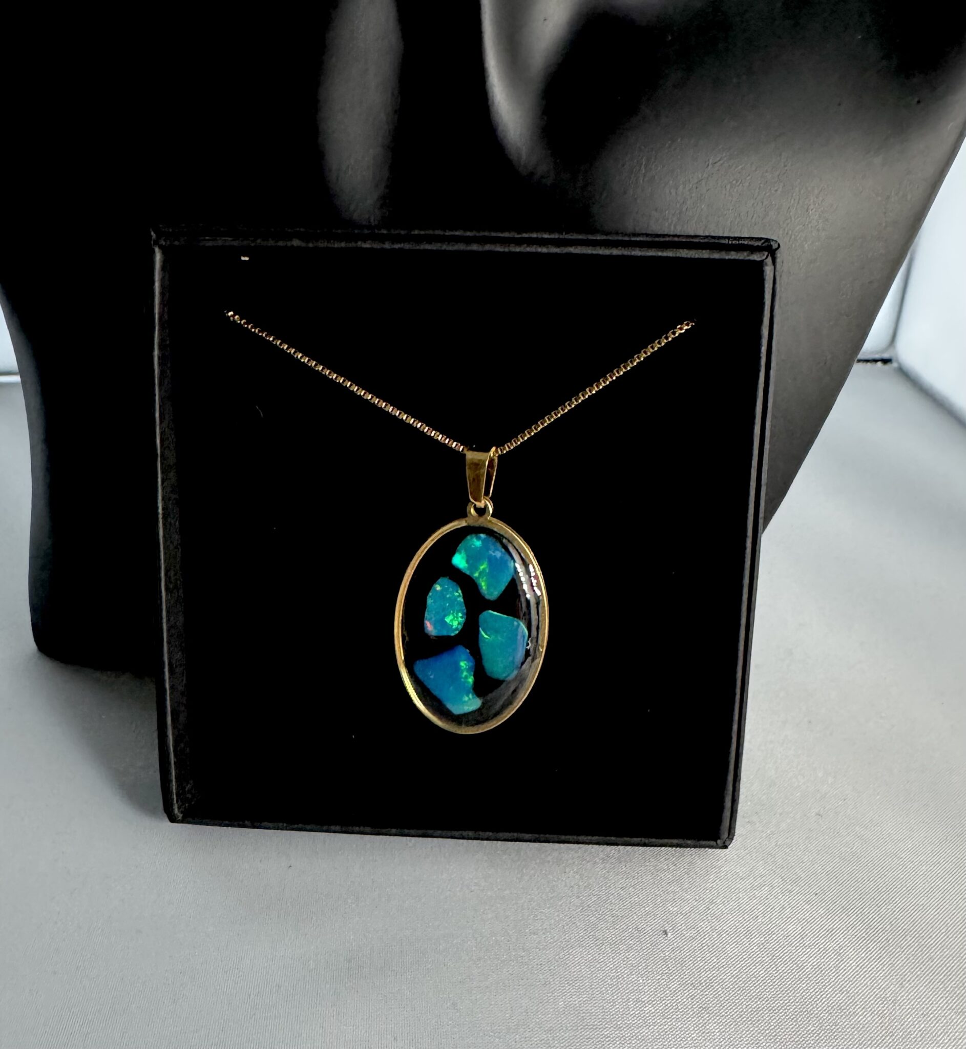 Außergewöhnlich schöner vergoldeter Opal Anhänger mit einer Edelstahlkette A4G