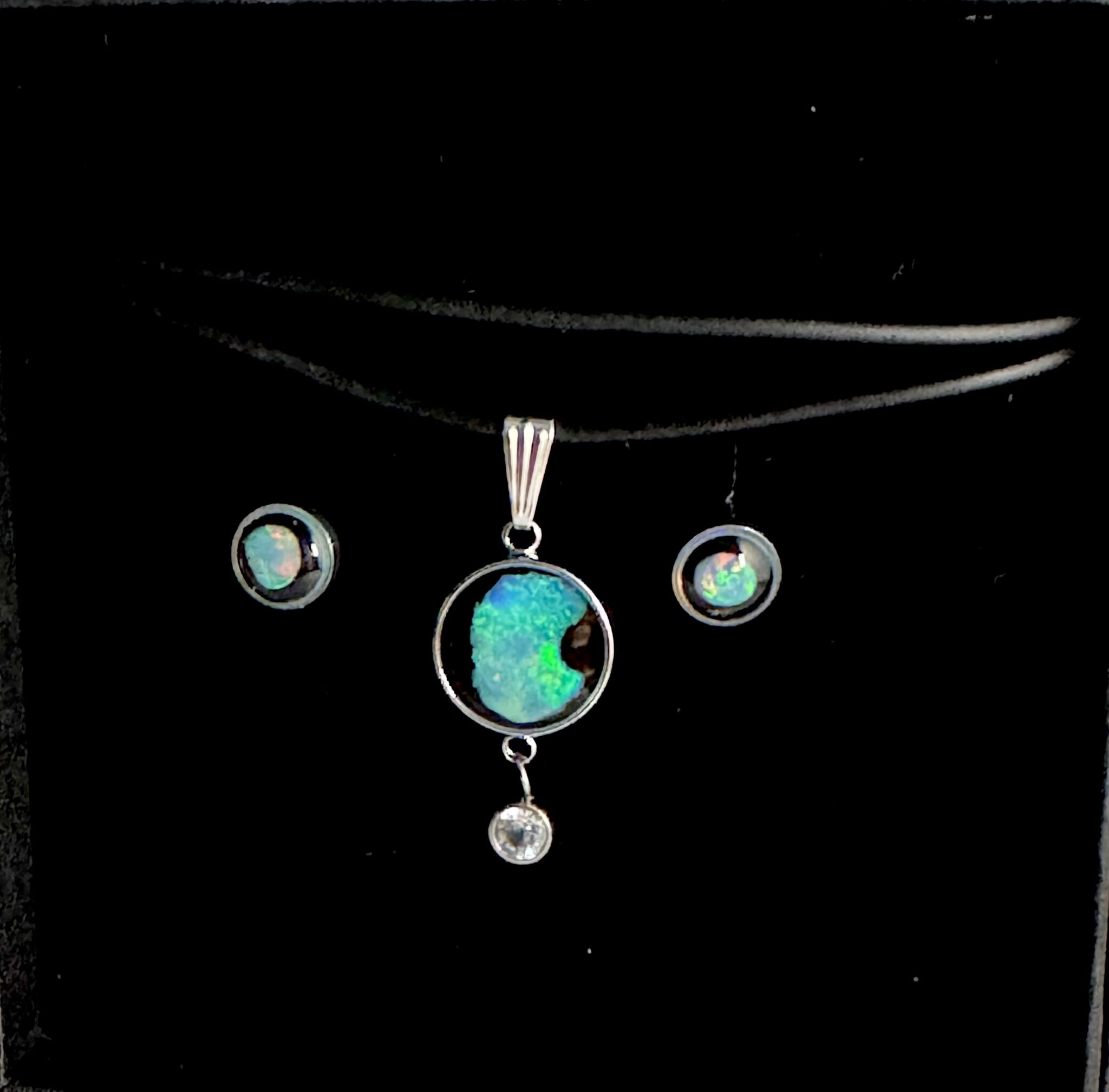 Wunderschönes Opalschmuck Set-Halsband mit Ohrstecker *5